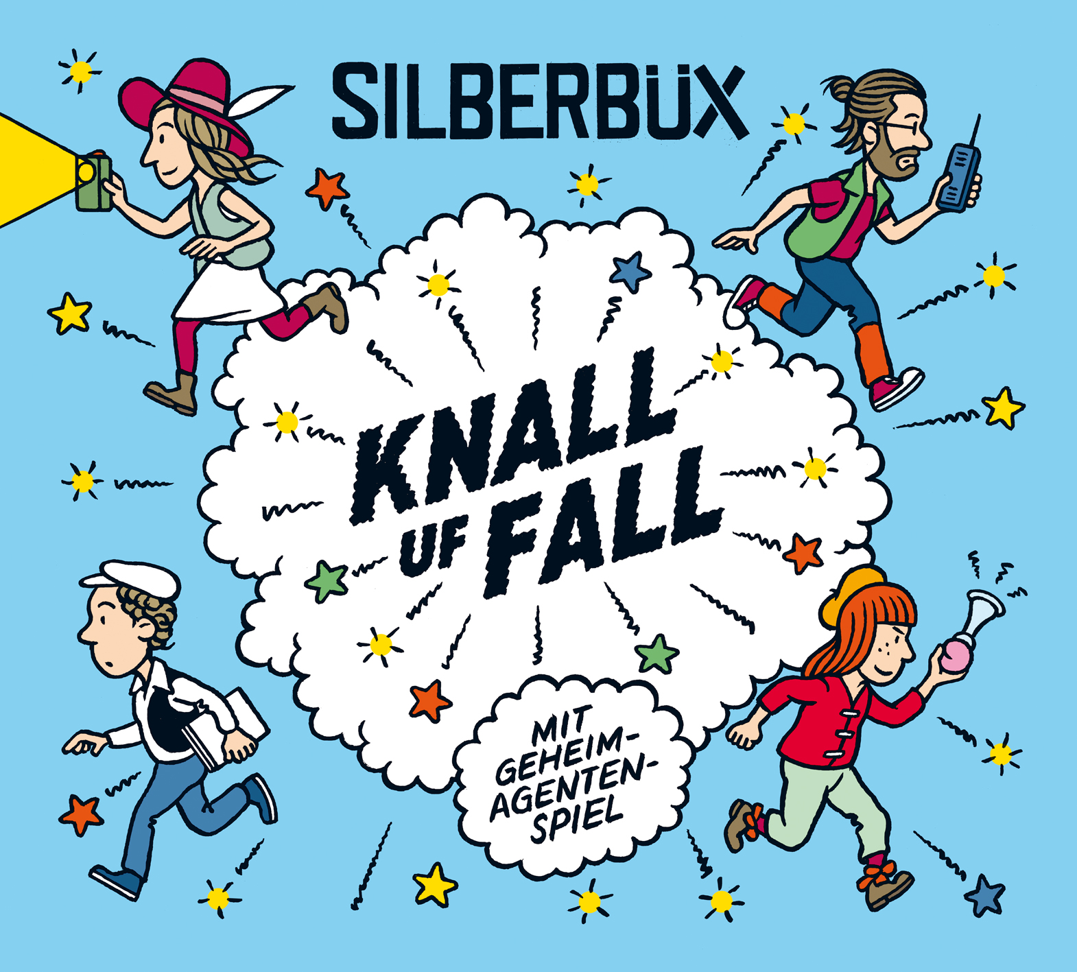 Seit Längerem träumen wir Vier von Silberbüx von Liedern, die nicht nur Kinder berühren und bewegen, sondern auch von ihnen geschrieben sind. Diese Sehnsucht stand Pate für die Lieder von KNALL UF FALL, die wir im Rahmen des Zürcher Festivals Blickfelder mit 80 Schülerinnen und Schülern geschrieben haben. Sie besingen Freiräume im kindlichen Alltag, wo sich die Fantasie, Spiel- und Erfinderlust wild wuchernd entfalten kann. Gut ein Dutzend neue Liedern sind nun auf der CD KNALL UF FALL zu hören, eingespielt von Silberbüx und gemeinsam eingesungen mit einem 80-köpfigen Kinderchor.